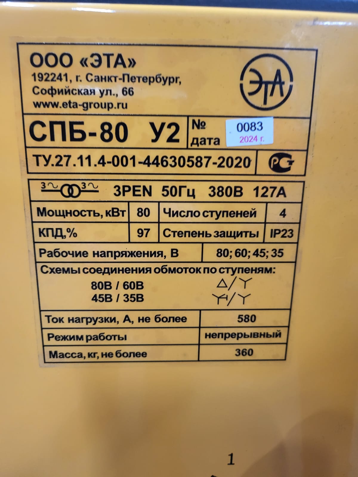 | Мощность, кВт | 83 |